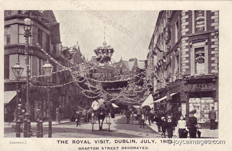 This PC shows Grafton street in 1903, decorated for the Royal Visit.