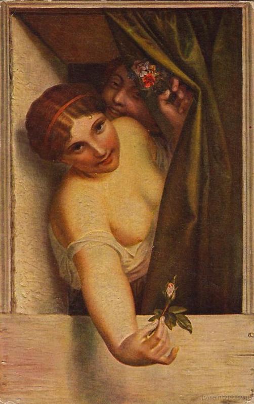 A plump bare generous arm shone, was seen, held forth from a white petticoatbodice and taut shiftstraps. A woman's hand flung forth a coin over the area railings. It fell on the path." (U10.250)