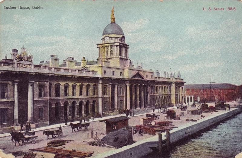 "sailing eastward past hulls and anchorchains, between the Customhouse old dock and George's quay." (U10.296)