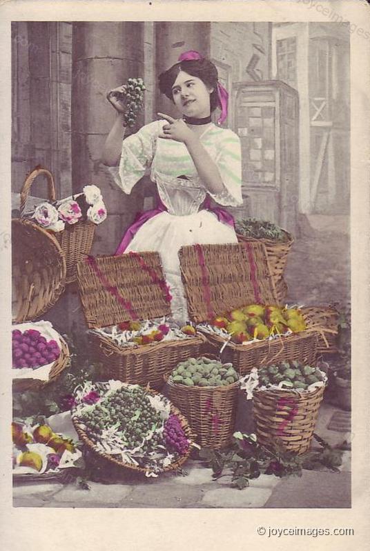 She bestowed fat pears neatly, head by tail, and among them ripe shamefaced peaches." (U10.303)