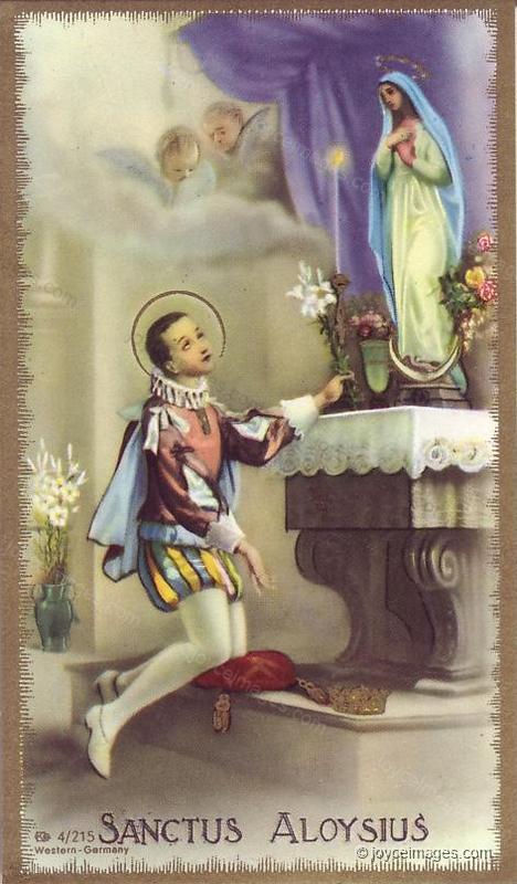 S. Aloysius Gonzaga (1568 - 1591) was of Italian nobility, the son of a compulsive gambler. He was trained from age four as a soldier and courtier. He suffered from kidney disease which he considered a blessing as it left him bed-ridden with time for prayer. While still a boy himself, he taught catechism to poor boys. At age 18 he signed away his legal claim to his family's lands and title to his brother, and became a Jesuit novice. He tended plague victims in Rome during the outbreak of 1591. Feast June 21.