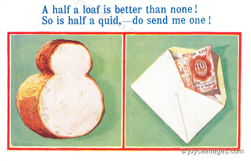 "and Joe chipping in because he stuck someone for a quid and Bloom putting in his old goo with his twopenny stump that he cadged off of Joe and talking about the Gaelic league" (U12.681)