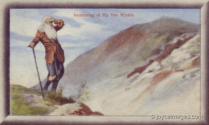 "Rip van Winkle we played. Rip: tear in Henny Doyle's overcoat. Van: breadvan delivering. Winkle: cockles and periwinkles. Then I did Rip van Winkle coming back. She leaned on the sideboard watching. Moorish eyes. Twenty years asleep in Sleepy Hollow. All changed. Forgotten. The young are old. His gun rusty from the dew." (U13.1112)