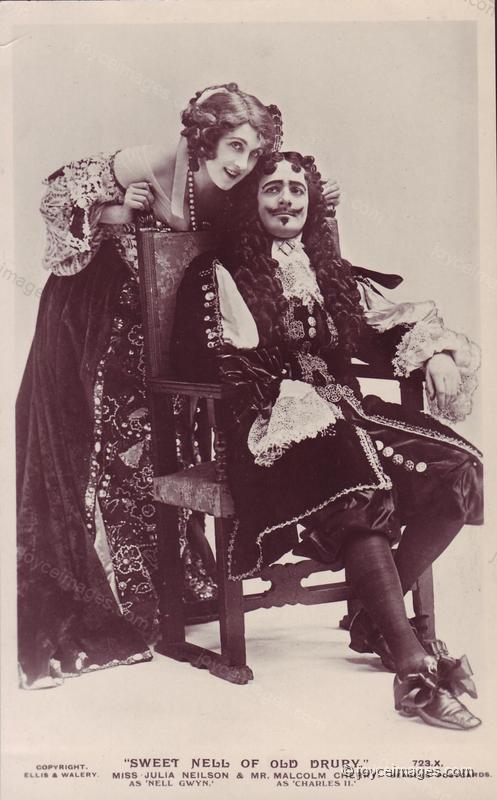 American playwright Paul Kester (1870 - 1933) wrote 'Sweet Nell of Old Drury,' a comedy in 4 acts popular on the Edwardian stage. This PC from the 1900s shows Julia Neilson as Nell and Malcolm Cherry as Charles II.