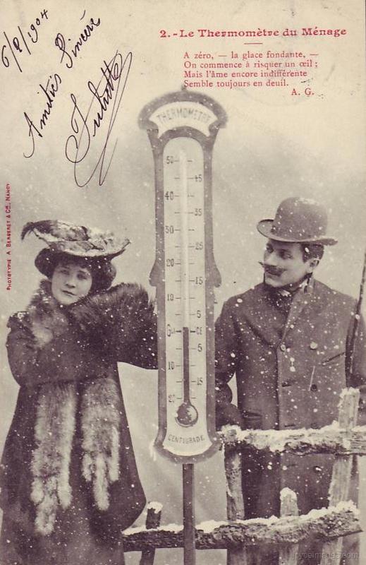 (In cap and seal coney mantle, wrapped up to the nose, steps out of her brougham and scans through tortoiseshell quizzing-glasses which she takes from inside her huge opossum muff.) Also to me. Yes, I believe it is the same objectionable person. Because he closed my carriage door outside sir Thornley Stoker's one sleety day during the cold snap of February ninetythree when even the grid of the wastepipe and ballstop in my bath cistern were frozen."