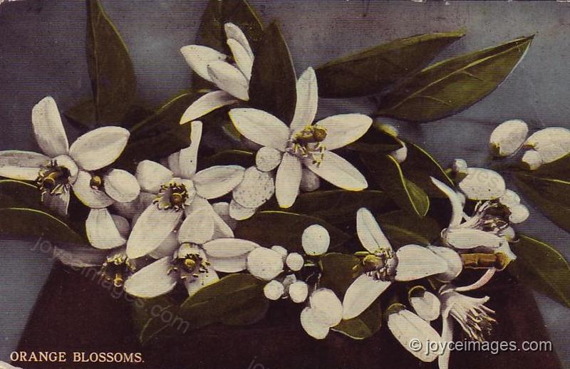 "with a wreath of faded orangeblossoms and a torn bridal veil,"