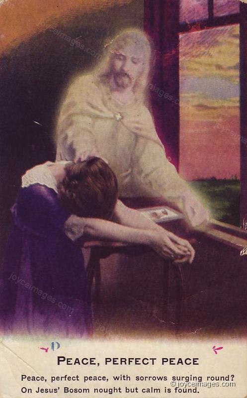 (Slowly, solemnly but indistinctly.) Peace, perfect peace. For identification, bucket in my hand. Cheerio, boys."
