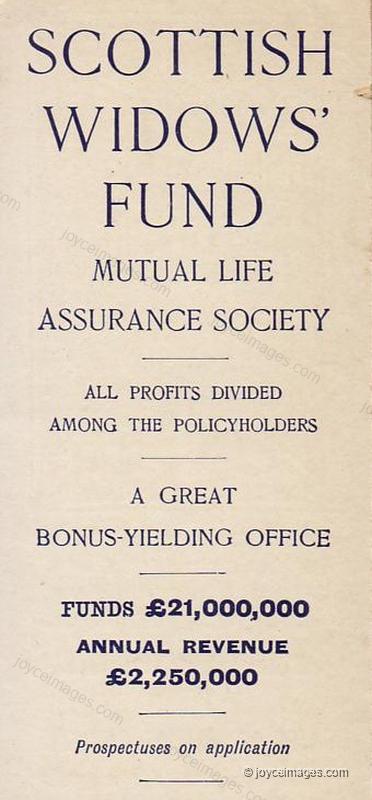 Documents: the birth certificate of Leopold Paula Bloom: an endowment assurance policy of £500 in the Scottish Widows' Assurance Society, intestated Millicent (Milly) Bloom, coming into force at 25 years as with profit policy of £430, £462-10-0 and £500 at 60 years or death, 65 years or death and death, respectively, or with profit policy (paidup) of £299-10-0 together with cash payment of £133-10-0, at option: a bank passbook" (U17.1854)