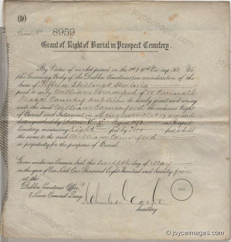"dockets of the Catholic Cemeteries' (Glasnevin) Committee, relative to a graveplot purchased: a local press cutting concerning change of name by deedpoll." ([U17.1865])
