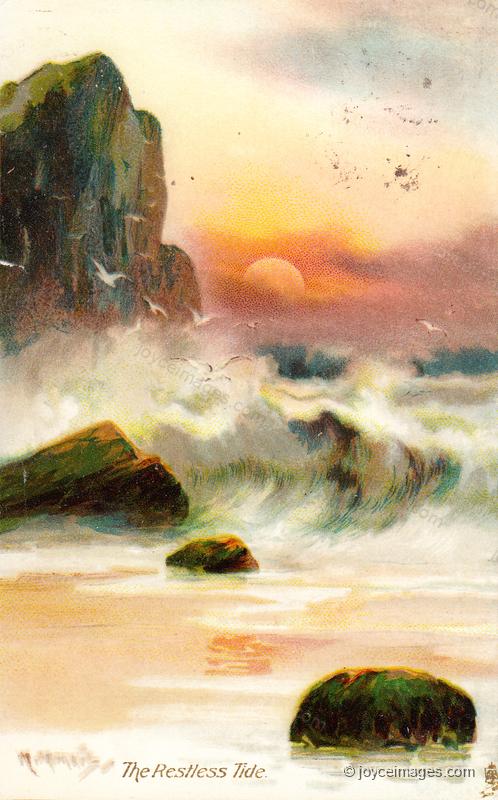 "the restlessness of its waves and surface particles visiting in turn all points of its seaboard: the independence of its units: the variability of states of sea: its hydrostatic quiescence in calm: its hydrokinetic turgidity in neap and spring tides: its subsidence after devastation: its sterility in the circumpolar icecaps, arctic and antarctic: its climatic and commercial significance: its preponderance of 3 to 1 over the dry land of the globe: its indisputable hegemony extending in square leagues over all the region below the subequatorial tropic of Capricorn: the multisecular stability of its primeval basin: its luteofulvous bed: its capacity to dissolve and hold in solution all soluble substances including millions of tons of the most precious metals: its slow erosions of peninsulas and islands, its persistent formation of homothetic islands, peninsulas and downwardtending promontories: its alluvial deposits: its weight and volume and density:" (U17.188)