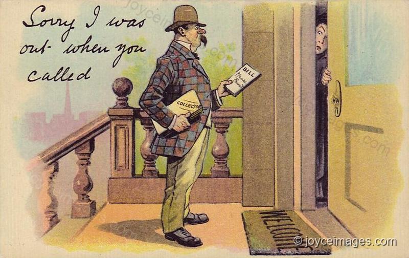Successively, in descending helotic order: Poverty: that of the outdoor hawker of imitation jewellery, the dun for the recovery of bad and doubtful debts, the poor rate and deputy cess collector." (U17.1933)