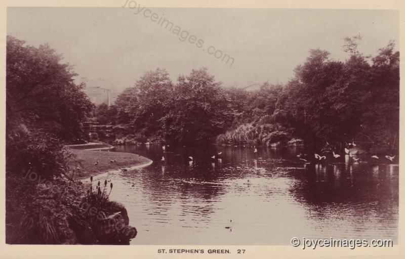 "Moreover, on the free surface of the lake in Stephen's green amid inverted reflections of trees her uncommented spit, describing concentric circles of waterrings" (U17.897)