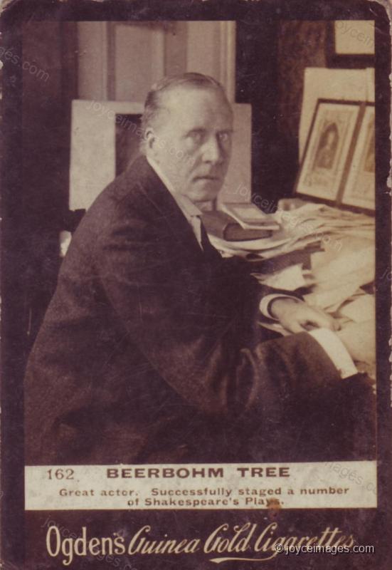 Herbert Beerbohm Tree (1853 - 1917) was an English actor-manager. He ran the Haymarket Theatre, and later created His Majesty's Theatre, both in the West End of London. His productions included A Woman of No Importance by Oscar Wilde (1893), Trilby by Paul Potter (1895), and Pygmalion by G.B. Shaw (1914). He played many of the leading roles. Tree directed and starred in the earliest surviving film of an excerpt from a Shakespearean play: King John in 1899. He founded the Royal Academy of Dramatic Art in 1904, and was knighted in 1909.