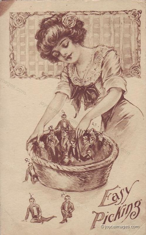 "men again all over they can pick and choose what they please a married woman or a fast widow or a girl for their different tastes like those houses round behind Irish street" (U18.1388)