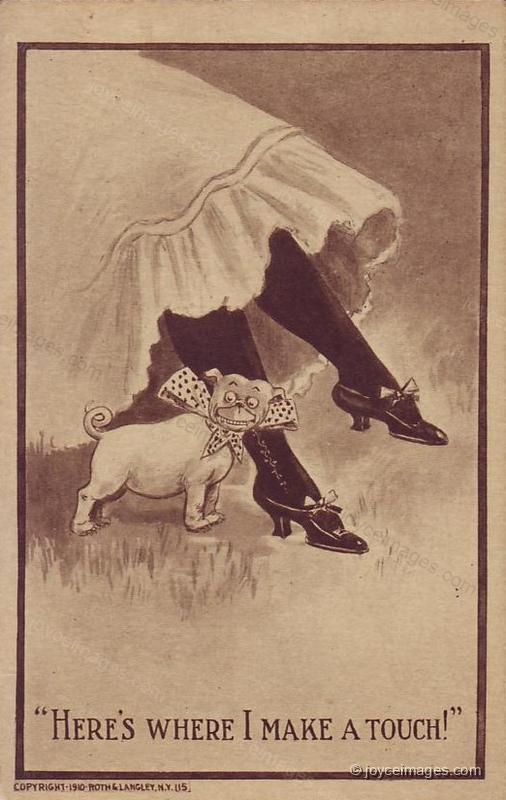 "and her dog smelling my fur and always edging to get up under my petticoats especially then" (U18.14)