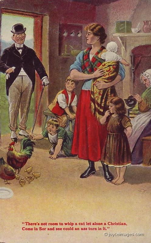"and Mina Purefoys husband give us a swing out of your whiskers filling her up with a child or twins once a year as regular as the clock always with a smell of children off her the one they called budgers or something like a nigger with a shock of hair on it Jesusjack the child is a black" (U18.159)