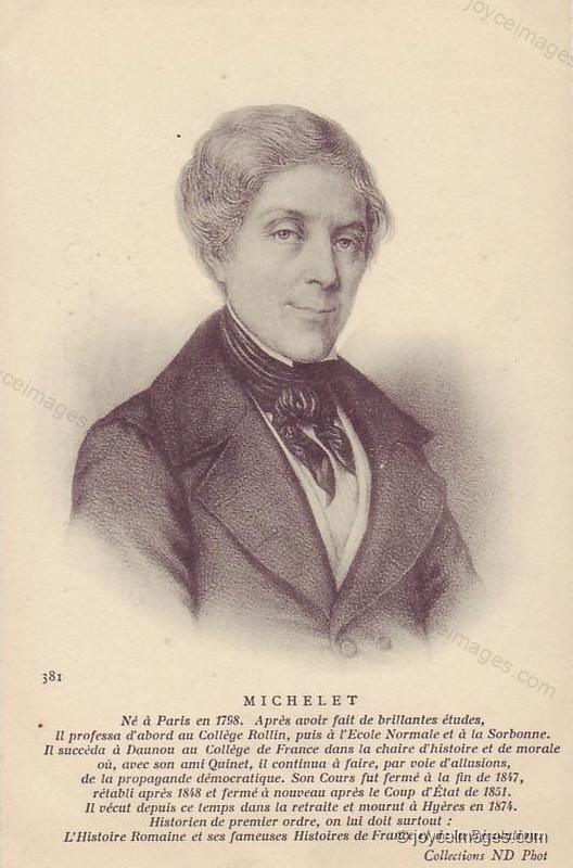 "He hopes to win in the gros lots. About the nature of women he read in Michelet." (U3.166)
