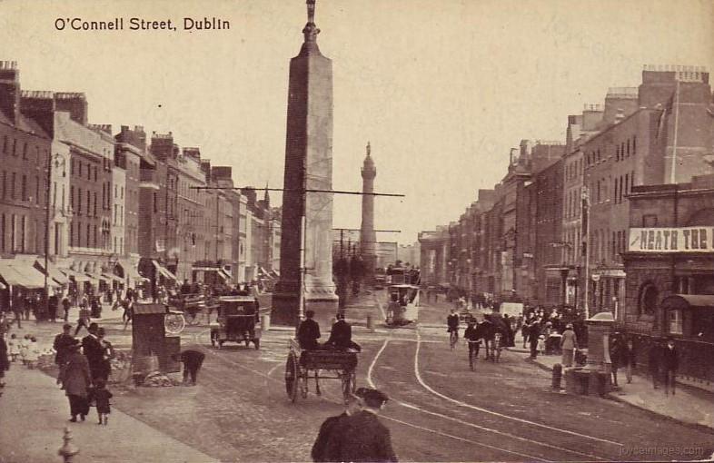 The foundation stone for a monument to Parnell was laid in 1899. This later PC shows Upper Sackville street with the Parnell Monument in place. It is a bronze statue on a pillar of granite designed by artist Augustus Saint-Gaudens. It was unveiled, after much controversy and multiple delays, in 1911.