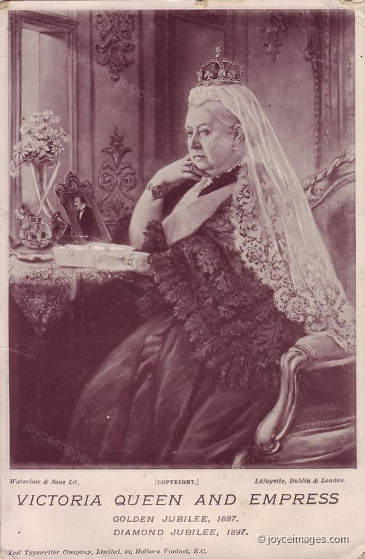 A photograph of Queen Victoria towards the end of her reign, still in mourning for a shadow. Notice the portrait of Prince Albert on the table, and in the miniature on her bracelet.