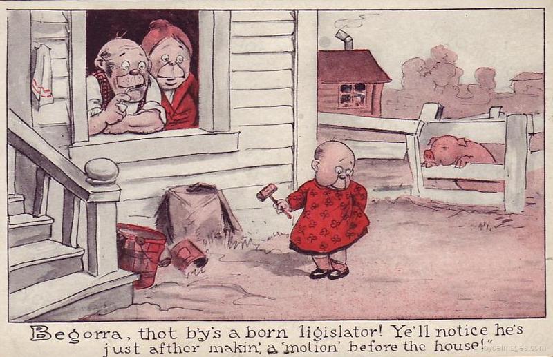 A contemporary PC caricatures the 'ligislative' abilities of the Irish such as Stephen displays.