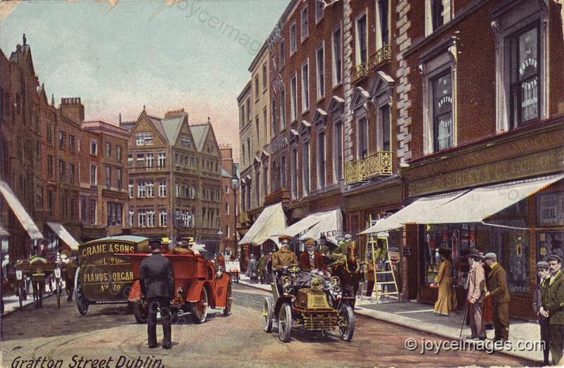 "Muslin prints, silk dames and dowagers, jingle of harnesses, hoofthuds lowringing in the baking causeway." (U8.614)