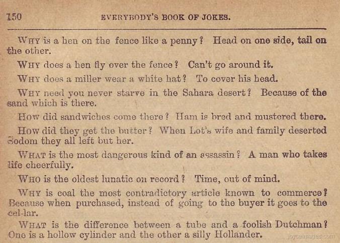 "Sandwich? Ham and his descendants mustered and bred there. Potted meats. What is home without Plumtree's potted meat? Incomplete. What a stupid ad!" (U8.741)