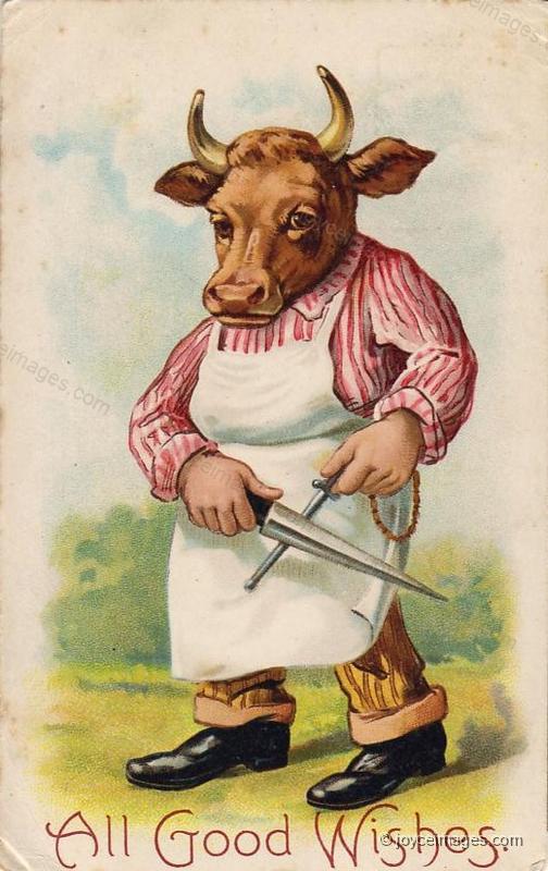 "Don't eat a beefsteak. If you do the eyes of that cow will pursue you through all eternity. They say it's healthier." (U8.535)