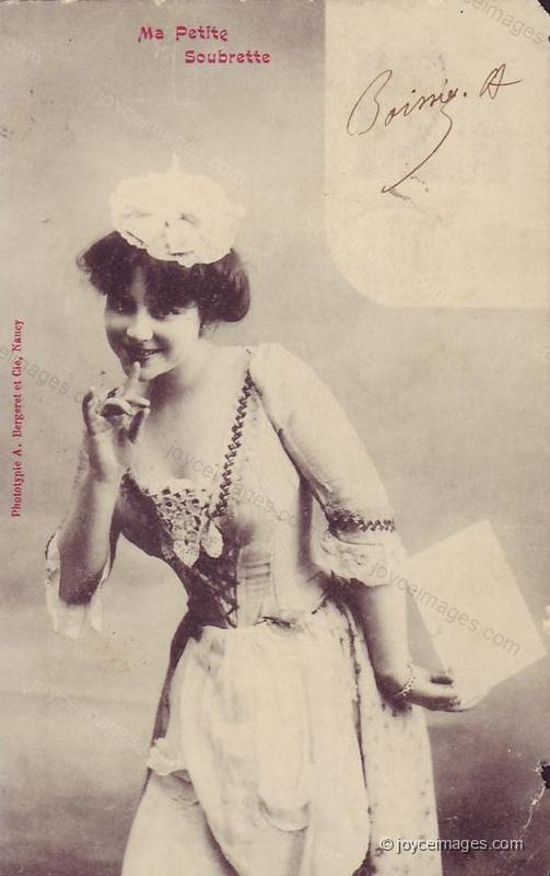 "They passed Dan Lowry's musichall where Marie Kendall, charming soubrette, smiled on them from a poster a dauby smile." (U10.495)