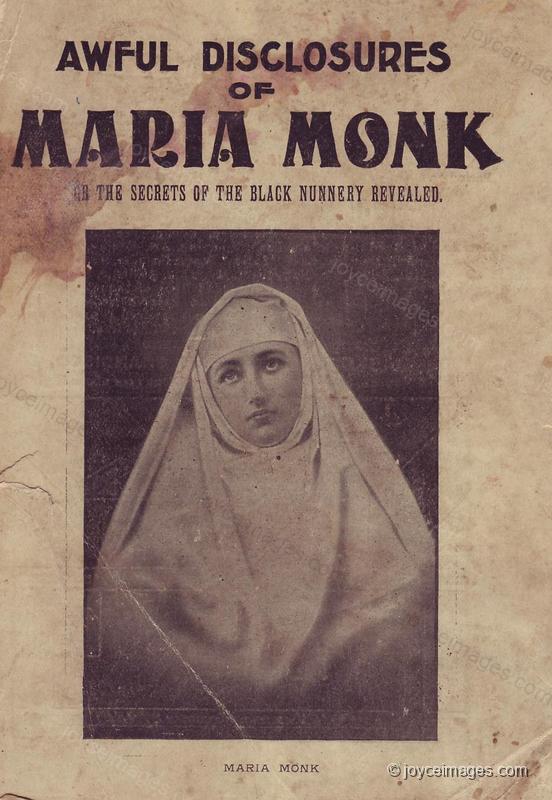 The book was publised in 1836 and exposed scandalous events that, according to Maria Monk, occurred at the Hotel Dieu convent in Montreal. Her central claim was that convent nuns were having sex with priests from the neighboring seminary, who came through a secret tunnel. Babies born of these illicit encounters, Monk claimed, were baptized, killed, and dumped in a lime pit. Monk said that, after 7 years in the convent, she had become pregnant and fled to avoid her child being killed. Monk's book caused an enormous public outcry that fed on the prevailing anti-Catholic sentiment of the era. Leading protestants in New York and Montreal demanded an investigation, and the Bishop of Montreal finally authorized it. It was conducted by Col. William Leete Stone, a New York City newspaper editor. It included walking around the convent with Maria Monk's book in hand, comparing her descriptions with reality. The investigation proved Maria Monk a sham. 'The Awful Disclosures' is still in print, and can usually be found in the BDSM section of bookstores.