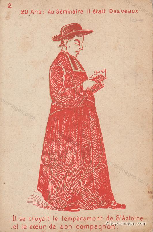 "A flushed young man came from a gap of a hedge and after him came a young woman with wild nodding daisies in her hand. The young man raised his cap abruptly: the young woman abruptly bent and with slow care detached from her light skirt a clinging twig. Father Conmee blessed both gravely and turned a thin page of his breviary. Sin: