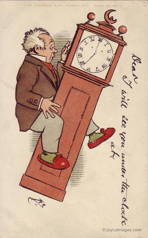 "Clock whirred. Miss Kennedy passed their way (flower, wonder who gave), bearing away teatray. Clock clacked." (U11.380)