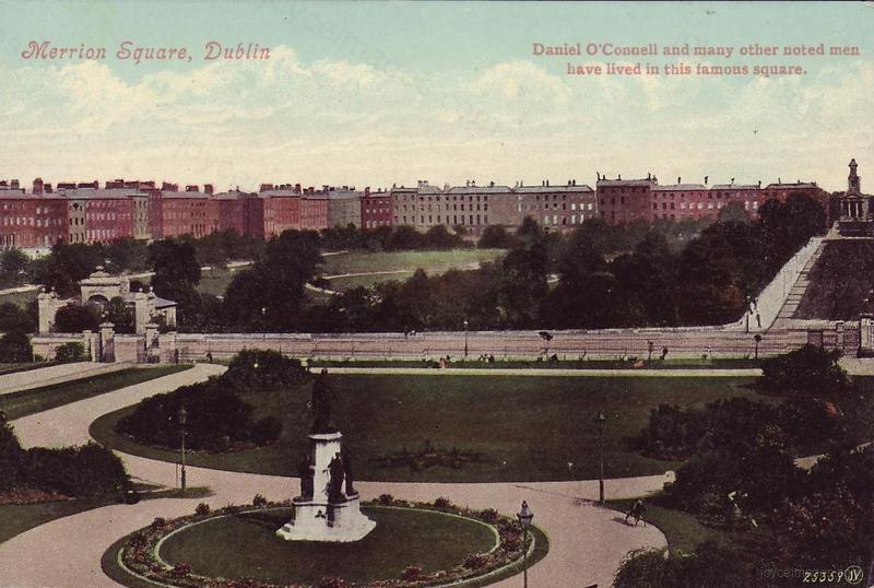 Merrion square was a classy neighborhood. This PC states: 'Daniel O'Connell and many other noted men have lived in this famous square.'