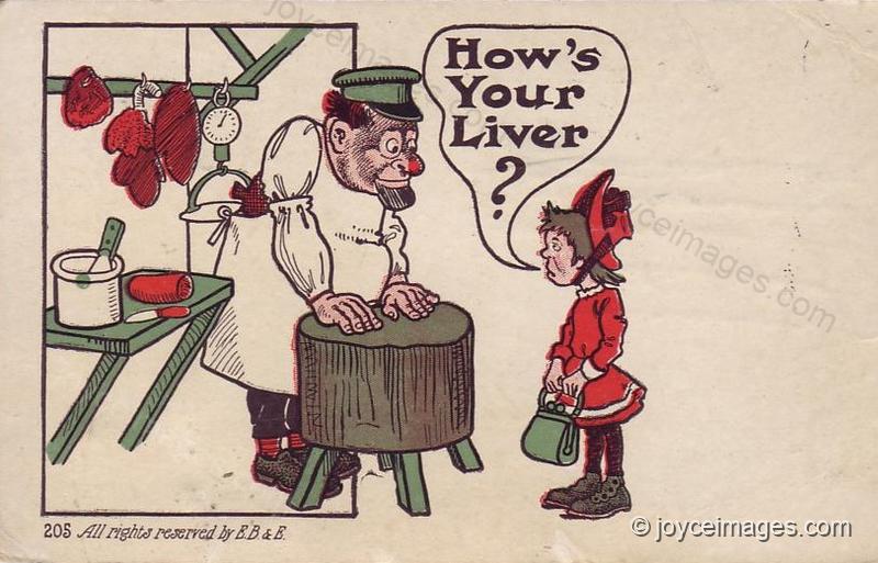 Liver and bacon. Steak and kidney pie. Right, sir. Right, Pat." (U11.496)