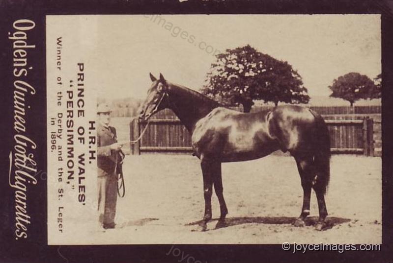 This is the stallion Persimmon (1893 - 1908), one of the Prince of Wales' most successful racing horses. One of Persimmon's offspring was the filly Sceptre, who won in 1902 every classic race except the Derby.