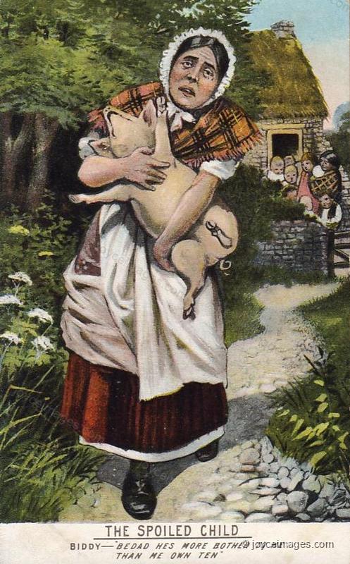 "Gob, the devil wouldn't stop him till he got hold of the bloody tin anyhow and out with him and little Alf hanging on to his elbow and he shouting like a stuck pig, as good as any bloody play in the Queen's royal theatre:" (U12.1842)