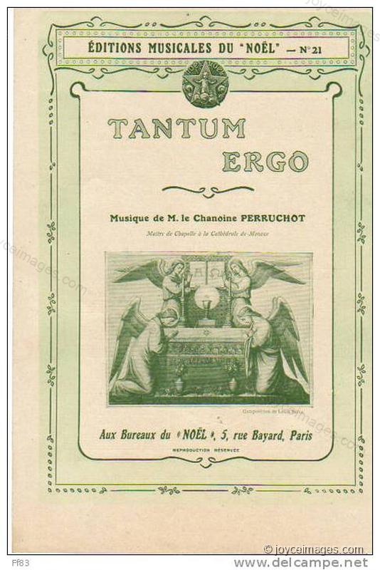 'Tantum ergo' are the opening words of the last 2 verses of Pange Lingua, a Mediaeval Latin hymn written by St Thomas Aquinas. The two verses are sung during the Veneration and Benediction of the Blessed Sacrament in the Roman Catholic Church.