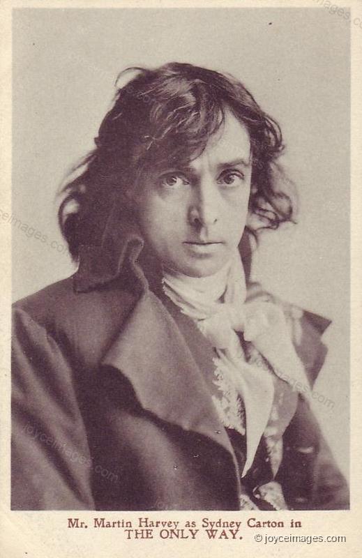 Martin Harvery (1863 - 1944), later Sir John Martin-Harvey (knighted 1921) was an extremely popular English stage actor. He made his debut in 1881. He was a member of the companies of Sir Henry Irving (1882), then Johnston Forbes-Robertson (1897), before starting his own. He was married to actress Miss N. de Silva (1869 - 1949). He had enormous success with The Only Way (adapted from Dickens' A Tale of Two Cities) and The Breed of the Treshams. With his company, he often toured the provinces to enthusiastic and adoring audiences.