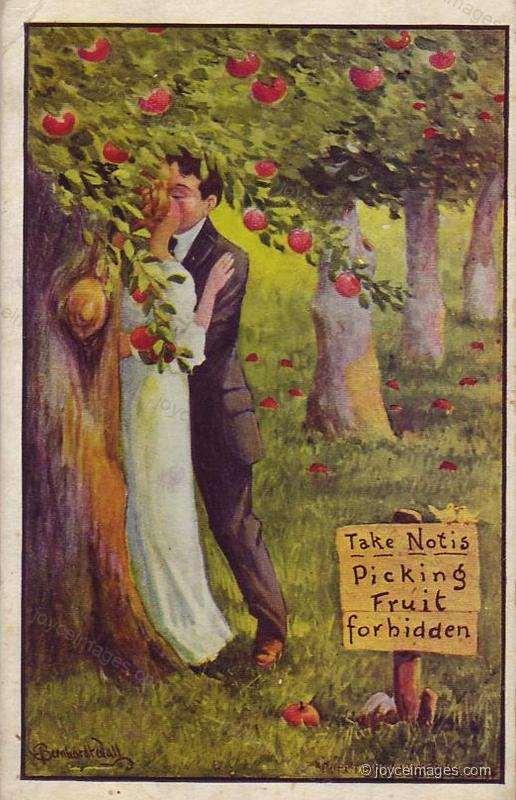"Not but what he could feel with mettlesome youth which, caring nought for the mows of dotards or the gruntlings of the severe, is ever (as the chaste fancy of the Holy Writer express it) for eating of the tree forbid it yet not so far forth as to pretermit humanity upon any condition soever towards a gentlewoman when she was about her lawful occasions." (U14.870)