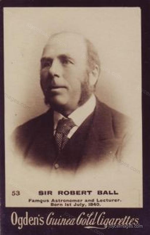 Sir Robert Stawell Ball (1840 - 1913) was an Irish astronomer to Lord Rosse in 1865 and Irish Astronomer-Royal in 1874. In 1892 he was appointed Lowndean Professor of Astronomy and Geometry at Cambridge University. His lectures, articles and books (eg. 'Starland' and 'The Story of the Heavens') were popular and simple in style. 'The Story of the Heavens' is in Bloom's library.