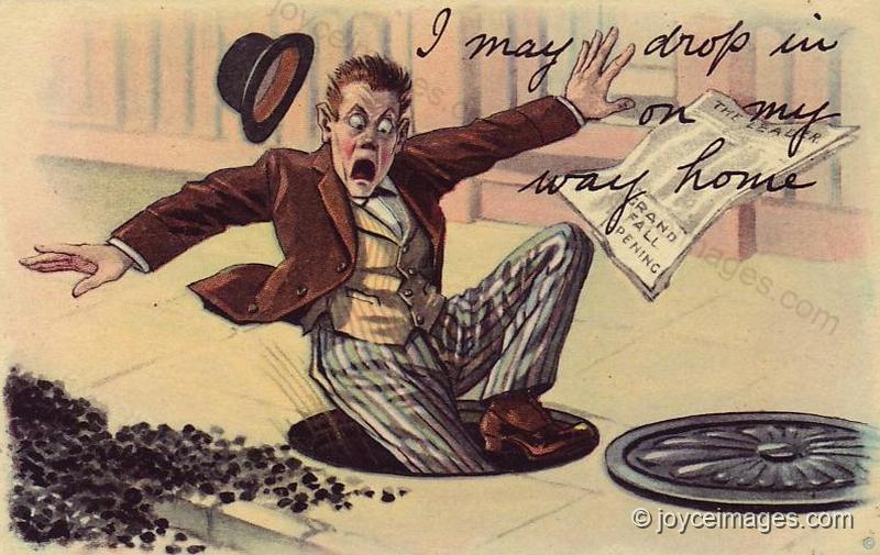 "(He executes a daredevil salmon leap in the air and is engulfed in the coalhole. Two discs on the columns wobble, eyes of nought. All recedes. Bloom plodges forward again through the sump. Kisses chirp amid the rifts of fog. A piano sounds. He stands before a lighted house, listening. The kisses, winging from their bowers fly about him, twittering, warbling, cooing.)"