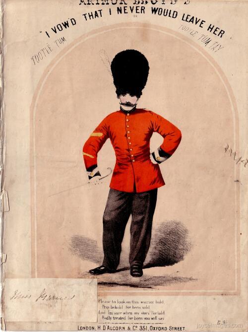 'I Vowed that I Never Would Leave Her' was a popular music hall song written in 1873 by Arthur Lloyd (1839 - 1904). As seen in the subtitle on this music sheet, 'Tooraloom' is actually 'Tootle tum'...