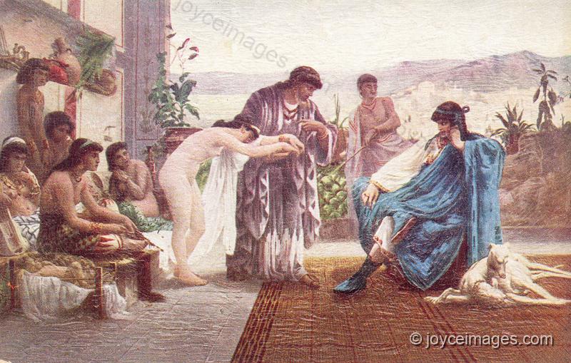 "For that lot. Trained by owner to fetch and carry, basket in mouth. (He bares his arm and plunges it elbowdeep in Bloom's vulva.) There's fine depth for you! What, boys? That give you a hardon? (He shoves his arm in a bidder's face.) Here, wet the deck and wipe it round!