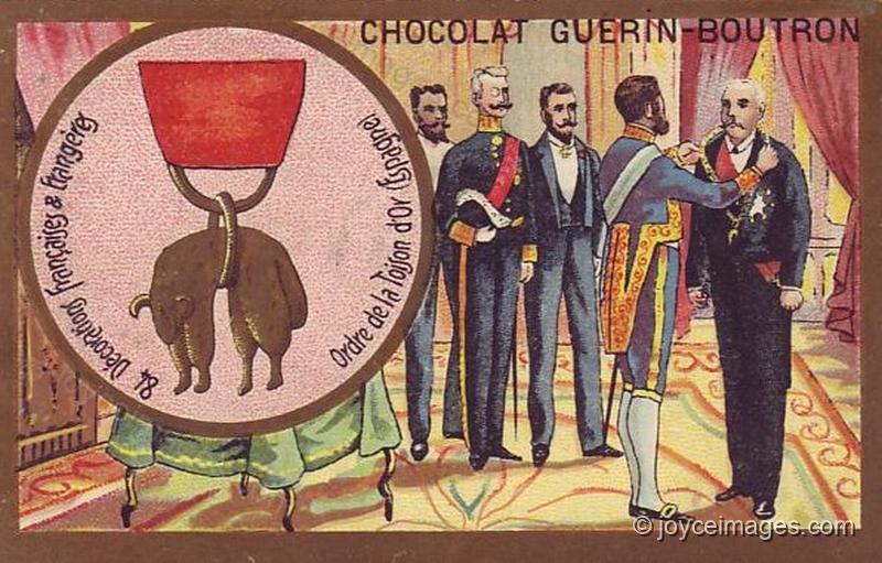 "He sucks a red jujube. He is robed as a grand elect perfect and sublime mason with trowel and apron,"