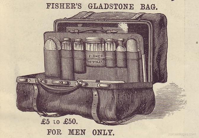(Accompanied by two blackmasked assistants, advances with gladstone bag which he opens.) Ladies and gents, cleaver purchased by Mrs Pearcy to slay Mogg."