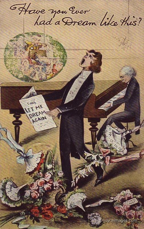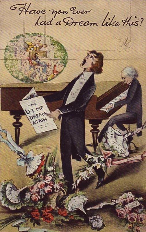 "It was in fact only a matter of months and he could easily foresee him participating in their musical and artistic conversaziones during the festivities of the Christmas season, for choice, causing a slight flutter in the dovecotes of the fair sex and being made a lot of by ladies out for sensation, cases of which, as he happened to know, were on record - in fact, without giving the show away, he himself once upon a time, if he cared to, could easily have. Added to which of course would be the pecuniary emolument by no mean.s to be sneezed at, going hand in hand with his tuition fees. Not, he parenthesised, that for the sake of filthy lucre he need necessarily embrace the lyric platform as a walk in life for any lengthy space of time." (U16.1833)