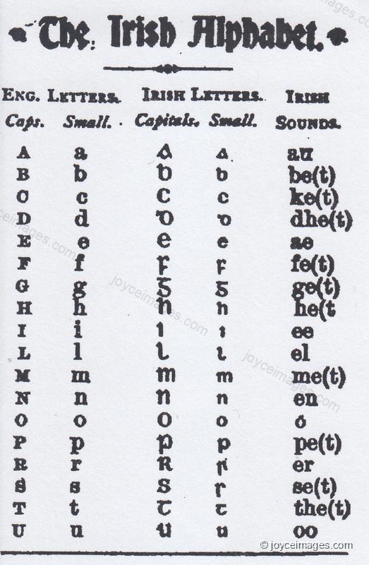 "Stephen wrote the Irish characters for gee, eh, dee, em, simple and modified," (U17.736)