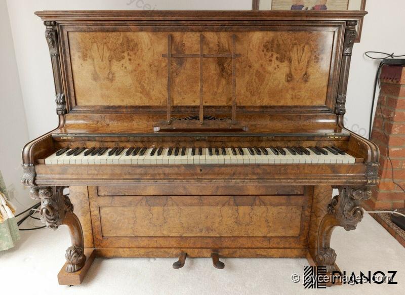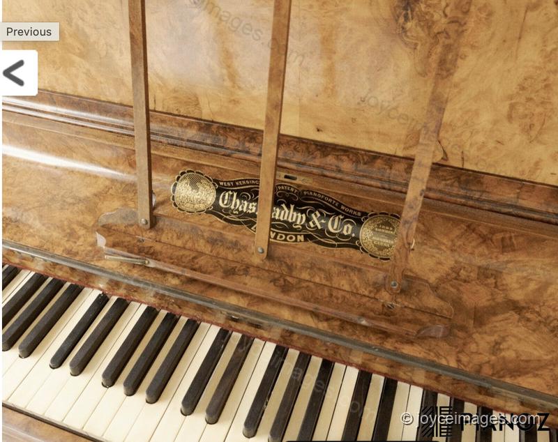 "with exposed keyboard, its closed coffin supporting a pair of long yellow ladies' gloves and an emerald ashtray containing four consumed matches, a partly consumed cigarette and two discoloured ends of cigarettes, its musicrest" (U17.1303)