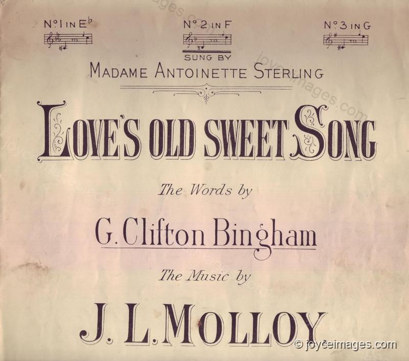 "its musicrest supporting the music in the key of G natural for voice and piano of Love's Old Sweet Song (words by G. Clifton Bingham, composed by J.L. Molloy," (U17.1306)