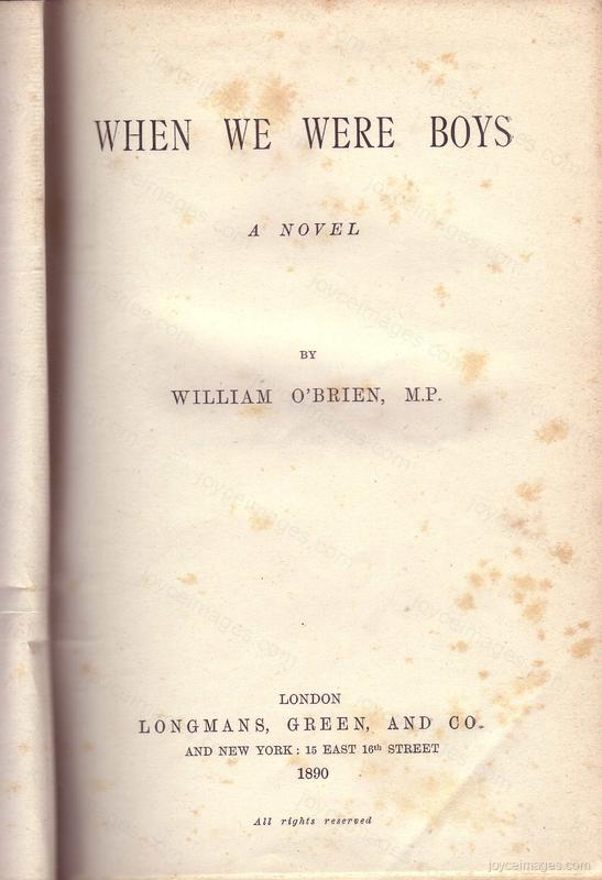 "When We Were Boys by William O'Brien M.P. (green cloth, slightly faded, envelope bookmark at p.217).
