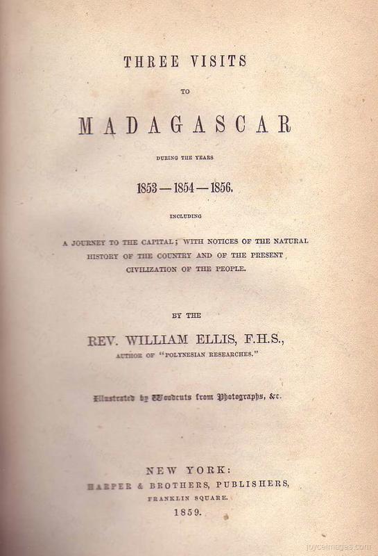 "Ellis's Three Trips to Madagascar (brown cloth, title obliterated).